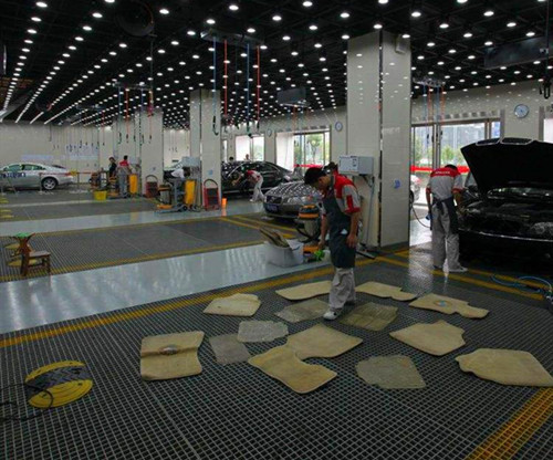 在洗車行業中,玻璃鋼格柵板不僅可作為洗車位的防護板,還可以作為排水溝蓋板使用。一般的洗車位尺寸可按照整板格柵尺寸進行設計,這樣可以較少格柵的浪費。