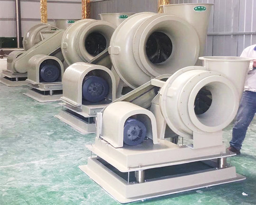 根據不同的需求,本公司對玻璃鋼離心風機的結構、外觀、配件類型進行不斷改進。比如下面是2022年第一批玻璃鋼離心風機準備發貨,這一批風機和之前生產的風機相對比,在風機外殼和架子之間增加了支撐結構,這樣能夠使風機整體的結構更加穩定。