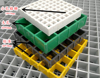 在外觀的基礎上對玻璃鋼格柵板的種類進行劃分,主要分為小孔玻璃鋼格柵和標準孔徑的格柵板以及大孔玻璃鋼格柵板。