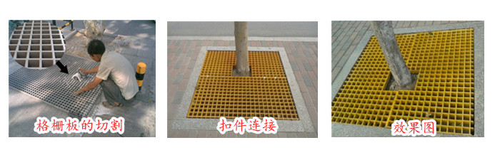 由于剛出模的玻璃鋼格柵板表面有一定的毛邊,需要進行清理工作。然后按照護樹板的尺寸使用切割工具進行切割。
